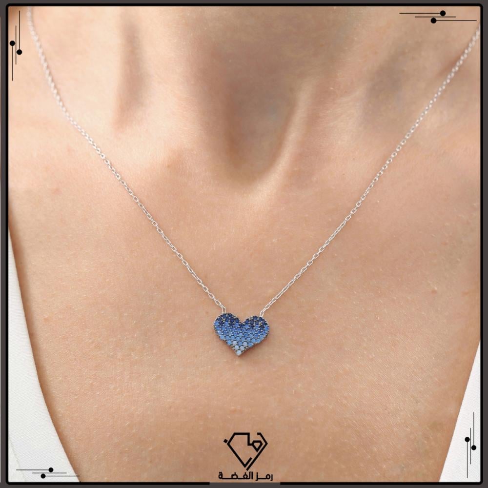 The necklace is centered with an elegant heart-shaped pendant in a captivating blue color, symbolizing purity and calmness. It reflects light beautifully with every movement, providing you with an irresistible glow.