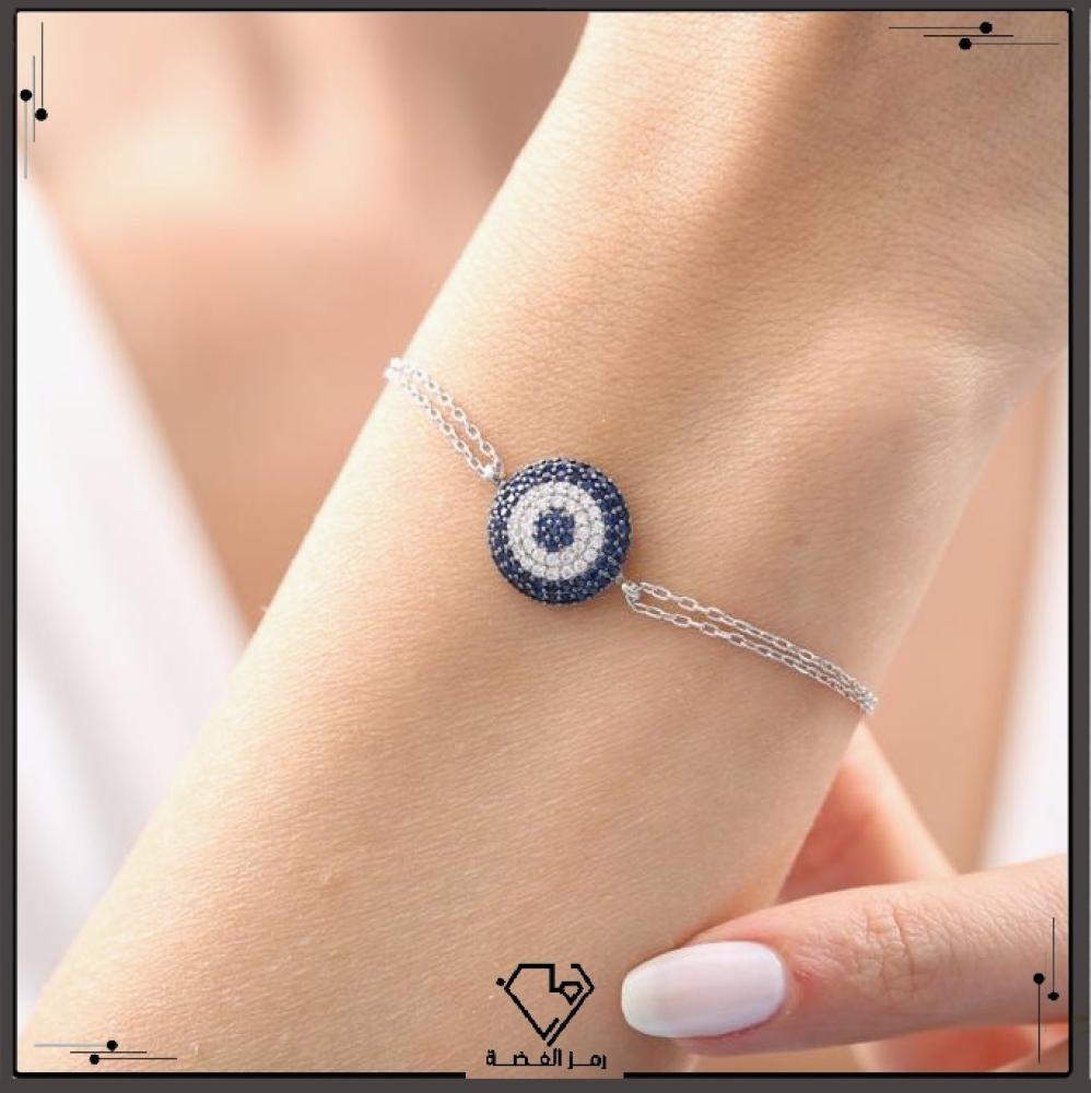 Add a touch of elegance with the "Al-Layl wa An-Nahar" bracelet from Silver Symbol, featuring a circular centerpiece adorned with zircon stones in a stunning gradient of blue, white, and blue again — a refined representation of the cycle of night and day. This balanced color transition adds charm and sparkle, reflecting beauty and calm in perfect harmony.
